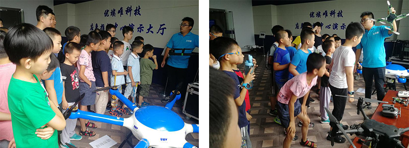2018年8月25日下午,妇幼活动中心同学及家长来我司参加了无人机科普实践活动。同学们到齐后,我司员工首先带同学们参观了飞机展示大厅并向同学们讲解了各款飞机的用途和功能等,同学们听得津津有味。